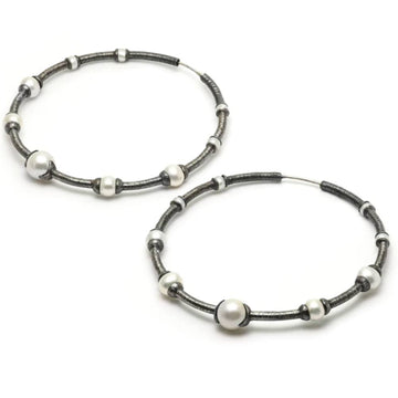 A galaxy of freshwater pearls are suspended from etched silver orbiting your ears.