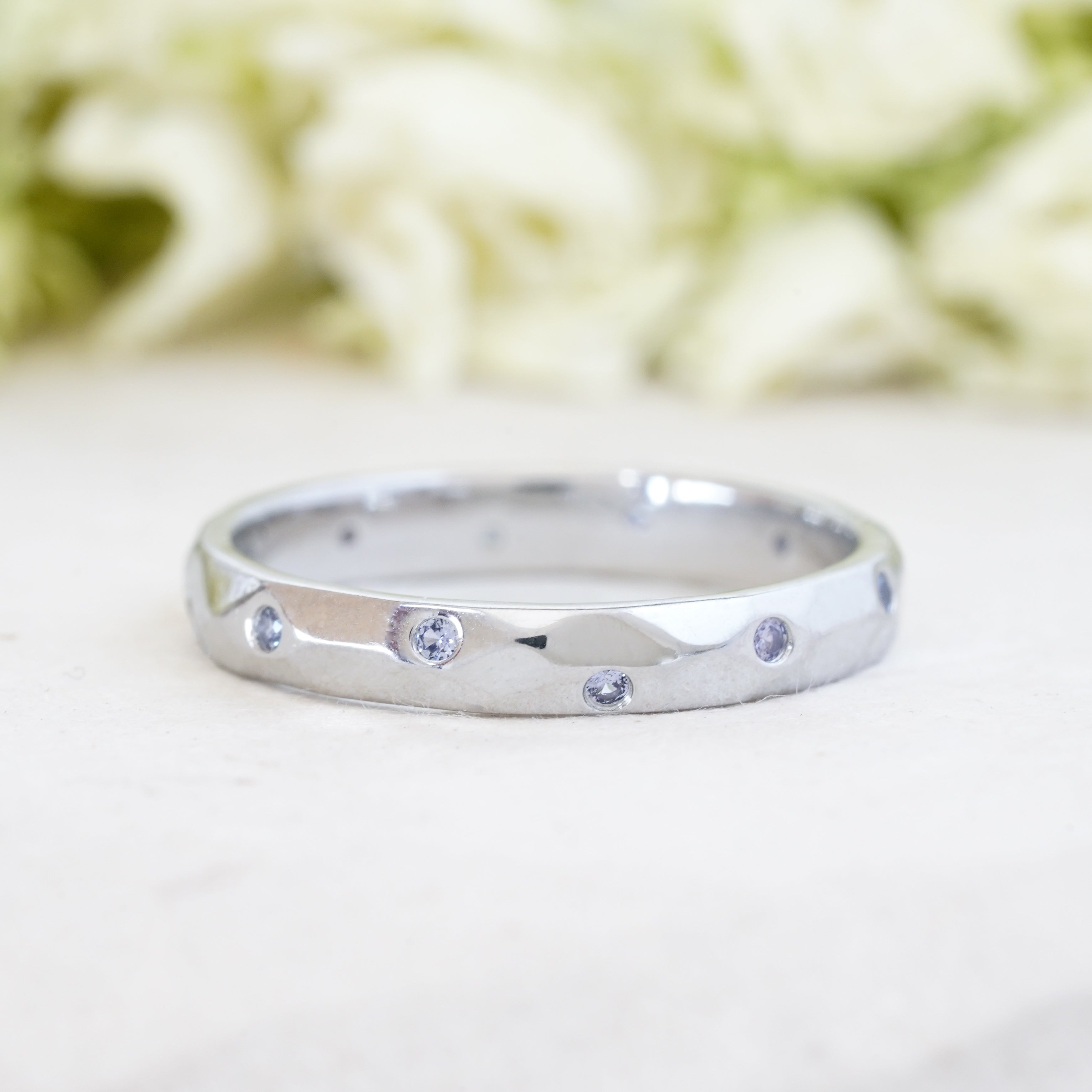 The same 3mm architectural band, but this time we’ve scattered it with brilliant sapphires—organically placed to echo the beauty of randomness within structure. It’s refined, radiant, and deeply personal. Designed for modernists who want their sparkle to feel like art, not excess.