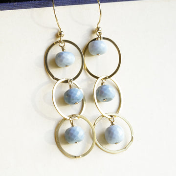 Three 14k yellow gold fill hoops hang from a matching earwire with a stone suspended in each ring.