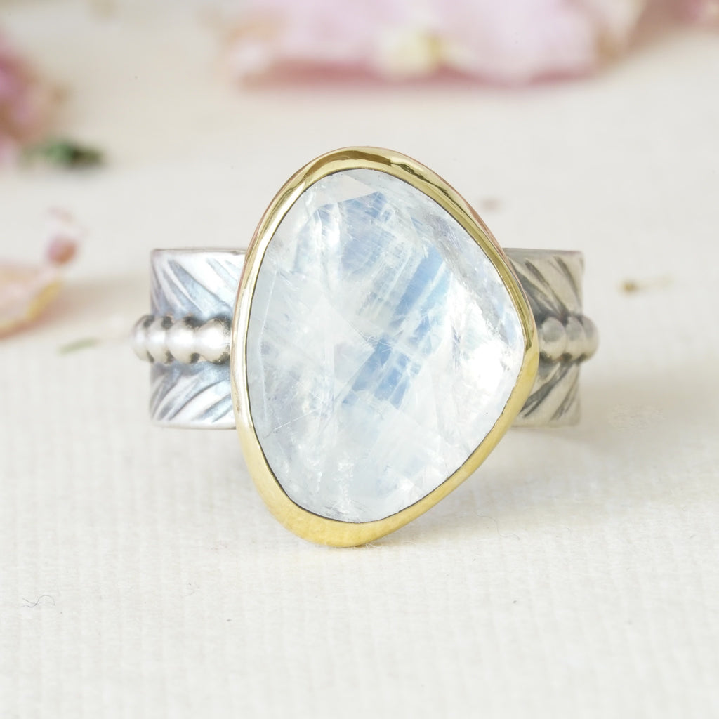 22k Gold & Silver Sagitta Moonstone Ring - Size 6.5
