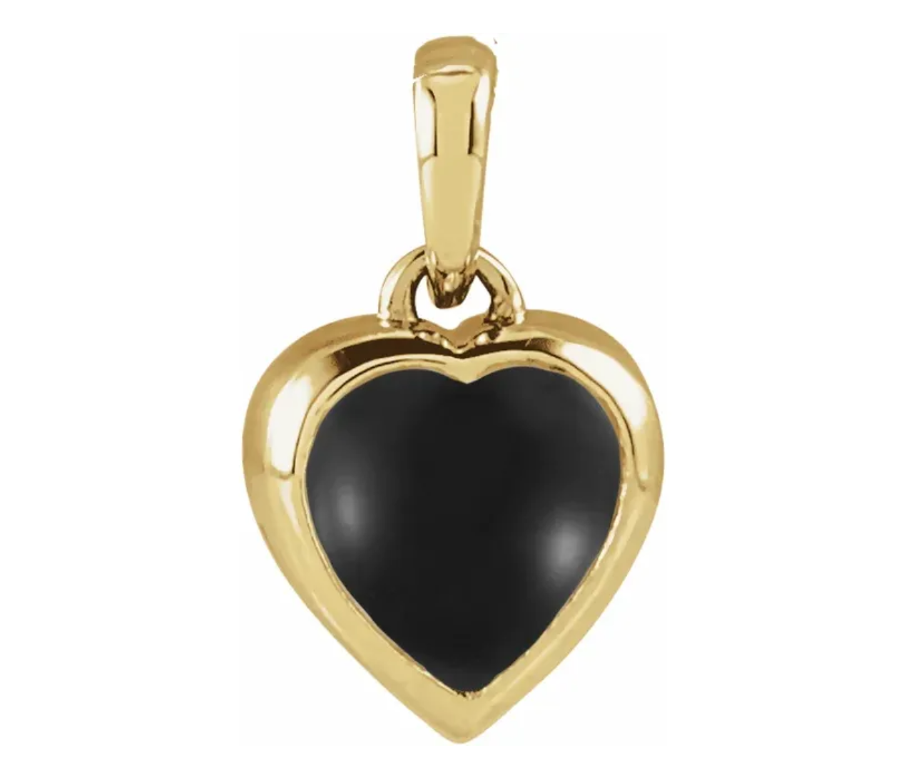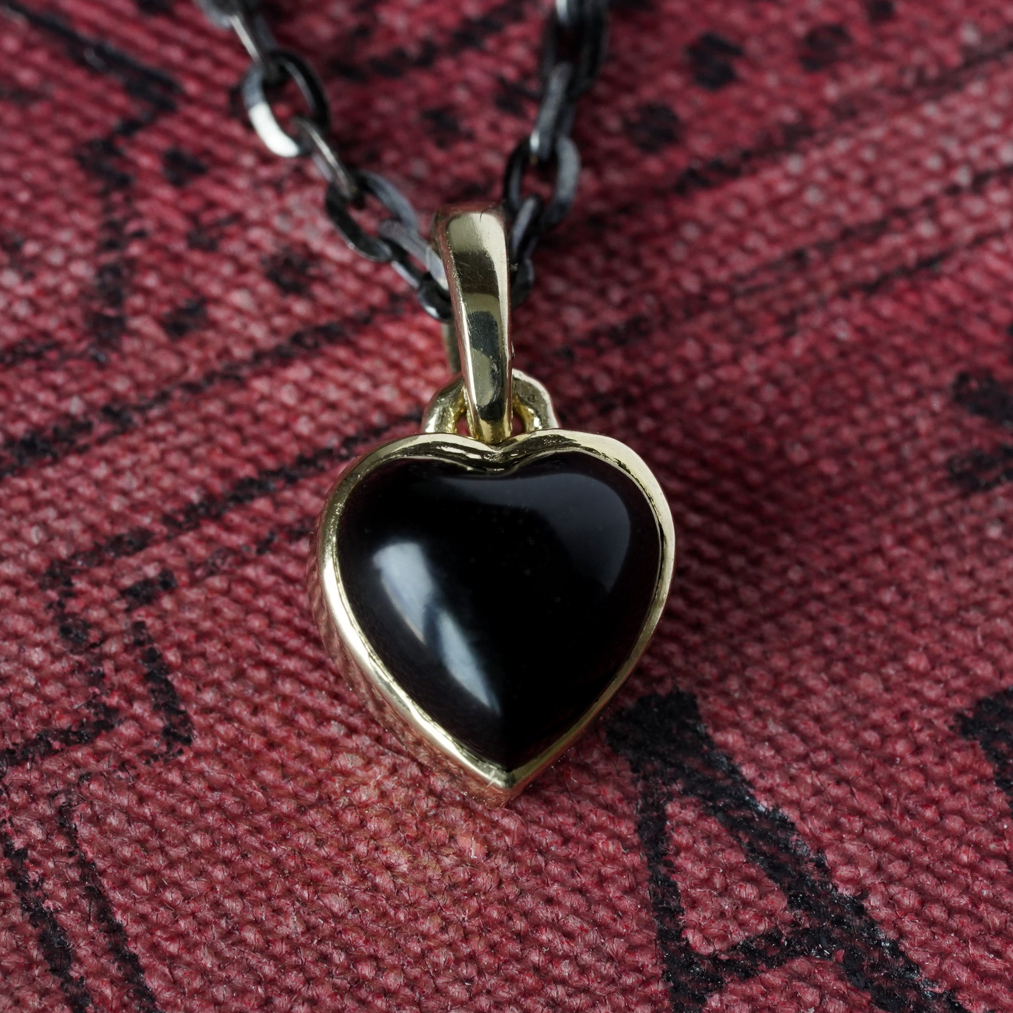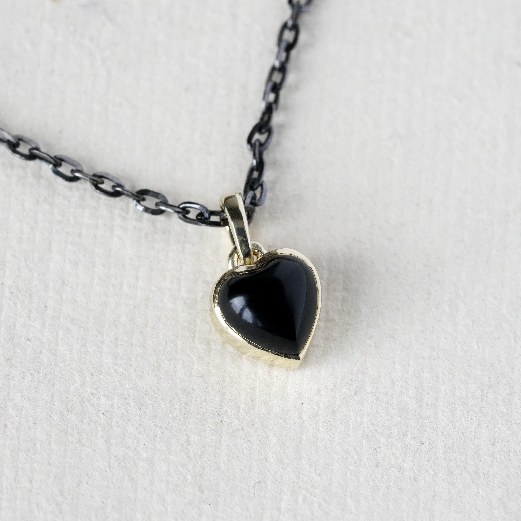 This pendant features a moody little onyx heart, wrapped in 14k yellow gold.