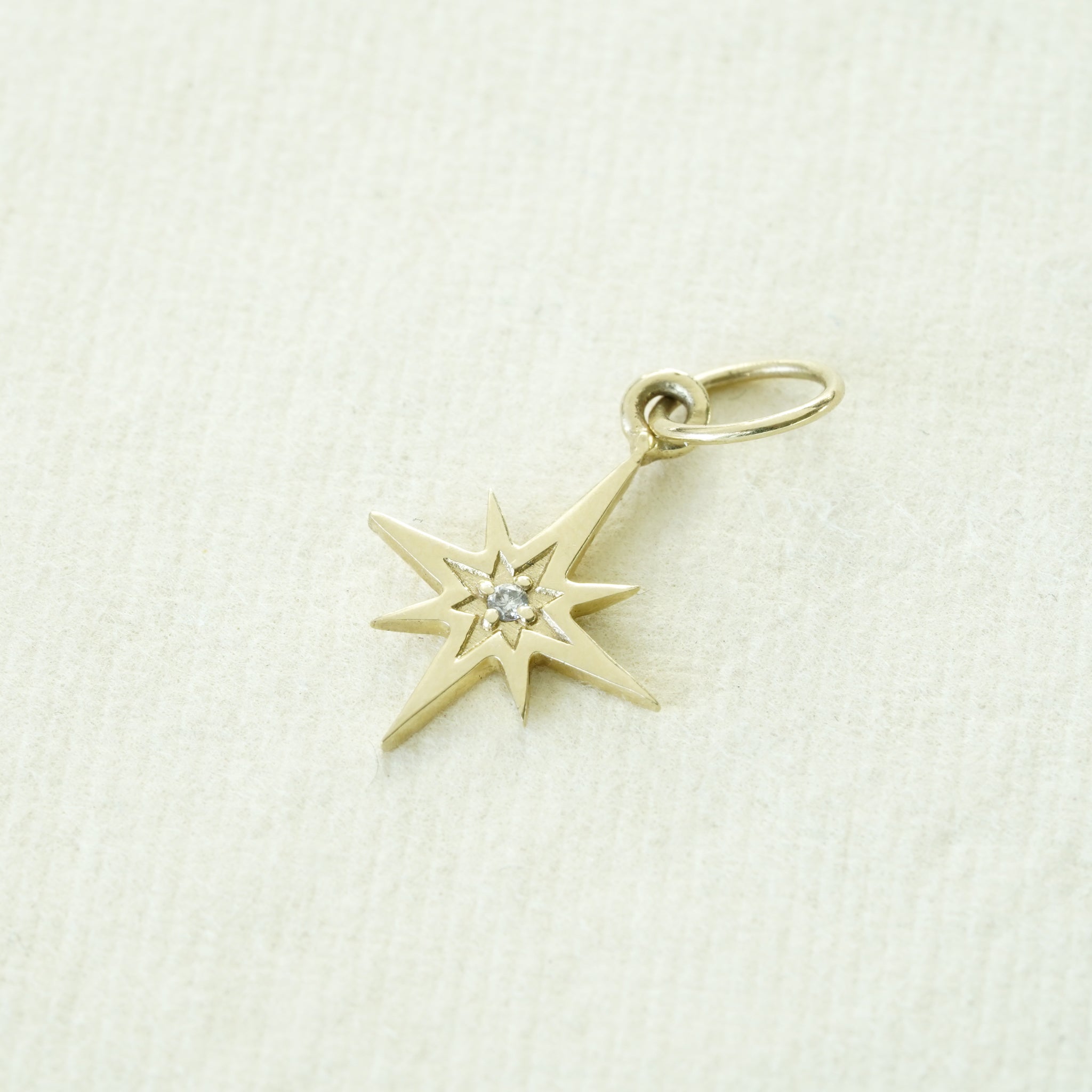 A shimmering diamond is placed in the center of this 14k yellow gold starburst charm. Truly, a striking piece to add to your collection.