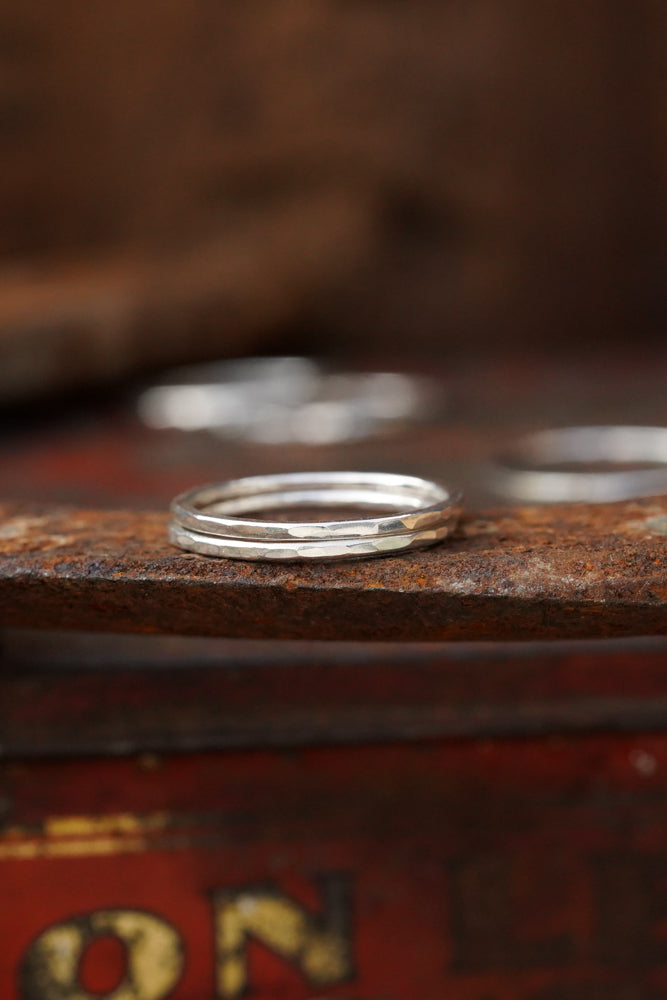 The Corona is the quintessential stacking ring. They aren’t too thin to get lost amidst your other rings or risk bending out of shape, and they aren’t too chunky as to interfere with your statement rings. It’s really the perfect size. They are hammered with a multitude of facets and polished to a bright shine. Choose your size and metal from the drop down.