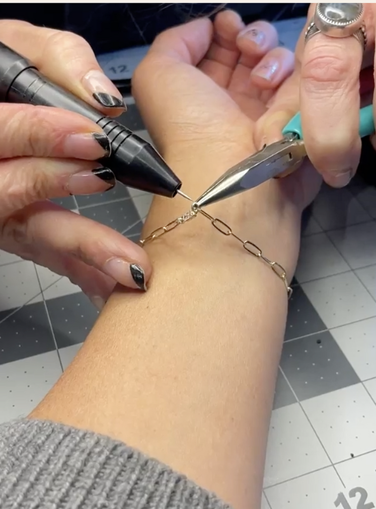 Our custom design and permanent jewelry consultations are complimentary. Permanent jewelry requires a small deposit of $20, which is always applied toward your purchase.