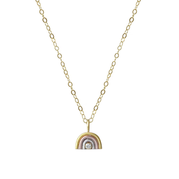 Symbolizing "hope", this dainty rainbow charm shines beautifully and the diamond adds just enough sparkle. Perfect on its on, or layered with other necklaces, or add new symbolism to your charm holder. This baby made to mix, match, and layer up.